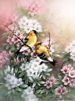 Putns uz ziedošs ķiršu koks